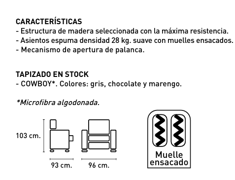 Este sillón destaca por su sentada y su confort. Tiene apertura con sistema de palanca. Está disponible en 3 colores. También se fabrica en sofá de 2 y 3 plazas.