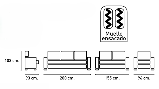 El sistema se acciona de manera independiente mediante una sencilla palanca en el lateral de cada plaza excepto en el sofá de 3 plazas que es fija la del medio. La sentada es comodísima y además se mantendrá firme firme durante mucho tiempo gracias a su sistema de muelles ensacados.